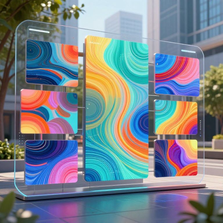 Background change AI technology in action, a futuristic interface with digital screens transforming outdoor scenery into various artistic backgrounds, vibrant colors, seamless blending, high-tech urban setting, modern aesthetic, ultra-detailed visuals.