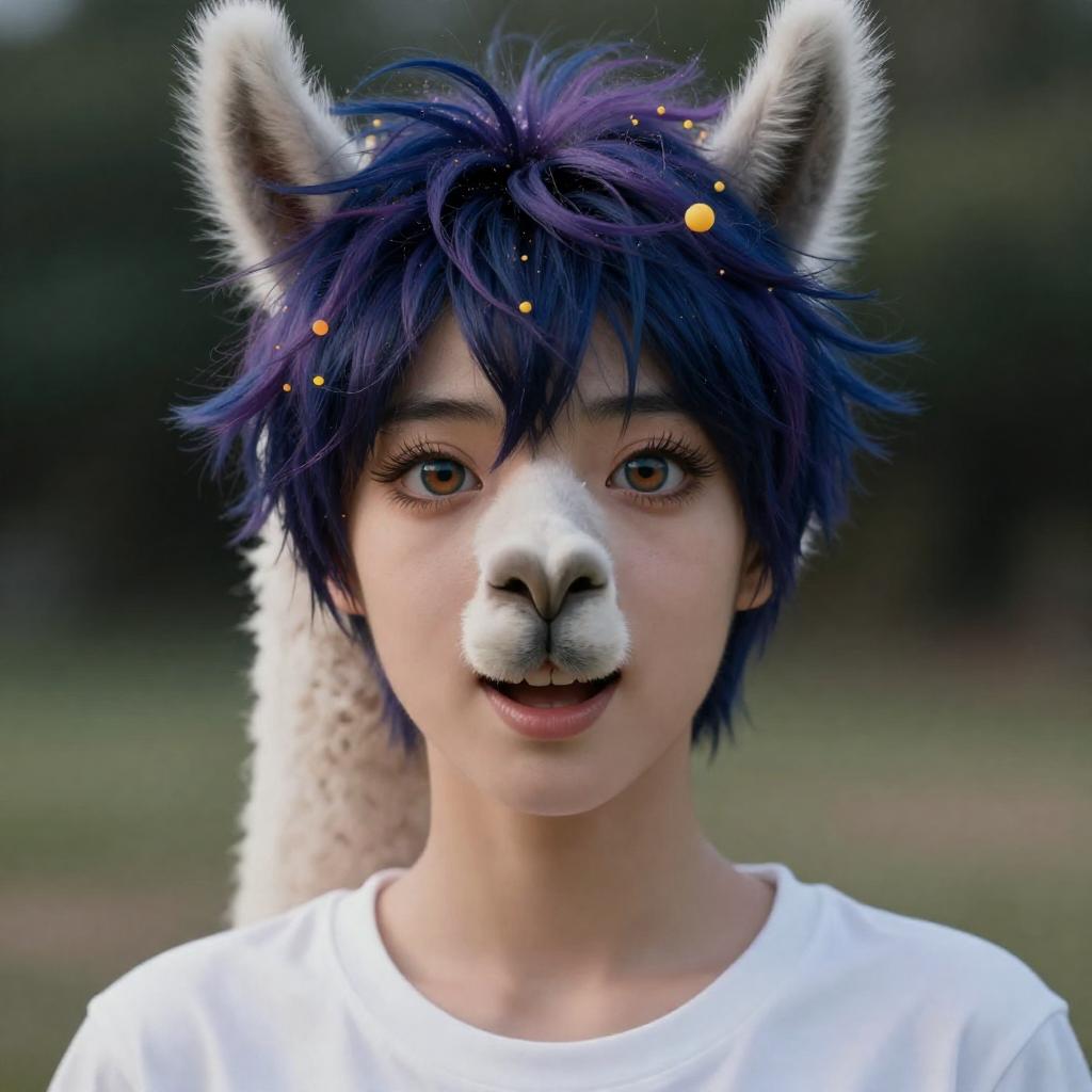Dark blue with purple shades, splatter of yellow and orange, spitting white llama, solo portrait, masterpiece, best quality, vivid colors, 35mm film, 8k uhd, hdr, Mab Graves vs Dan Mumford, realistic, Jack Hughes, intricately detailed eyes, splashy splash, detailed hair, intricate details in hair, Hajime no Ippo, Miho Hirano, Ryan Hewett, extremely detailed, cinematic photo crazy insane, high energy, magic, hyper realistic, detailed and realistic portrait of a woman, cartoon style, round eyes and short messy hair shot outside, wearing a white t shirt, skin texture, chapped lips, soft natural lighting, portrait photography, 85mm lens, magical photography, dramatic lighting, photo realism, ultra-detailed, intimate portrait composition, front light, (open mouth), smiling, athletic small waist, (((masterpiece))), ((best quality)), (((8k photography)), ((hands on face)), (elegant, beauty), ((blushed)), ((beautiful light gray eyes)), ((sexy goth girl, pure delicate innocent face)) and (smooth detailed face), (((hyper realistic))), ((black hair))), (blunt bangs), (symmetrical legs), symmetrical perfect body, sharp focus, (volumetric lighting), intricate details, rainbow paint, a girl made entirely out of rainbow paint, entirely paint, 1girl, (intricate details, hyperdetailed:1.15), gorgeous lighting, rainbow, paint splatter, splashes, very rainbow, very colorful, neon, paint drops, rainbow paint background, colorful background, ((high detailed skin, dslr, soft lighting, high quality, film grain, Fujifilm XT3, Sharp)) (canon 50mm) intricate details photorealistic, 35mm photograph, bokeh, 4k, highly detailed, A glitched-out (anime girl:1.3) dances across the screen, her movements and form constantly shifting and (deconstructing:1.2), embodying the dynamic essence of (breakcore:1.2), dynamic essence:1.1, cute red cheeks