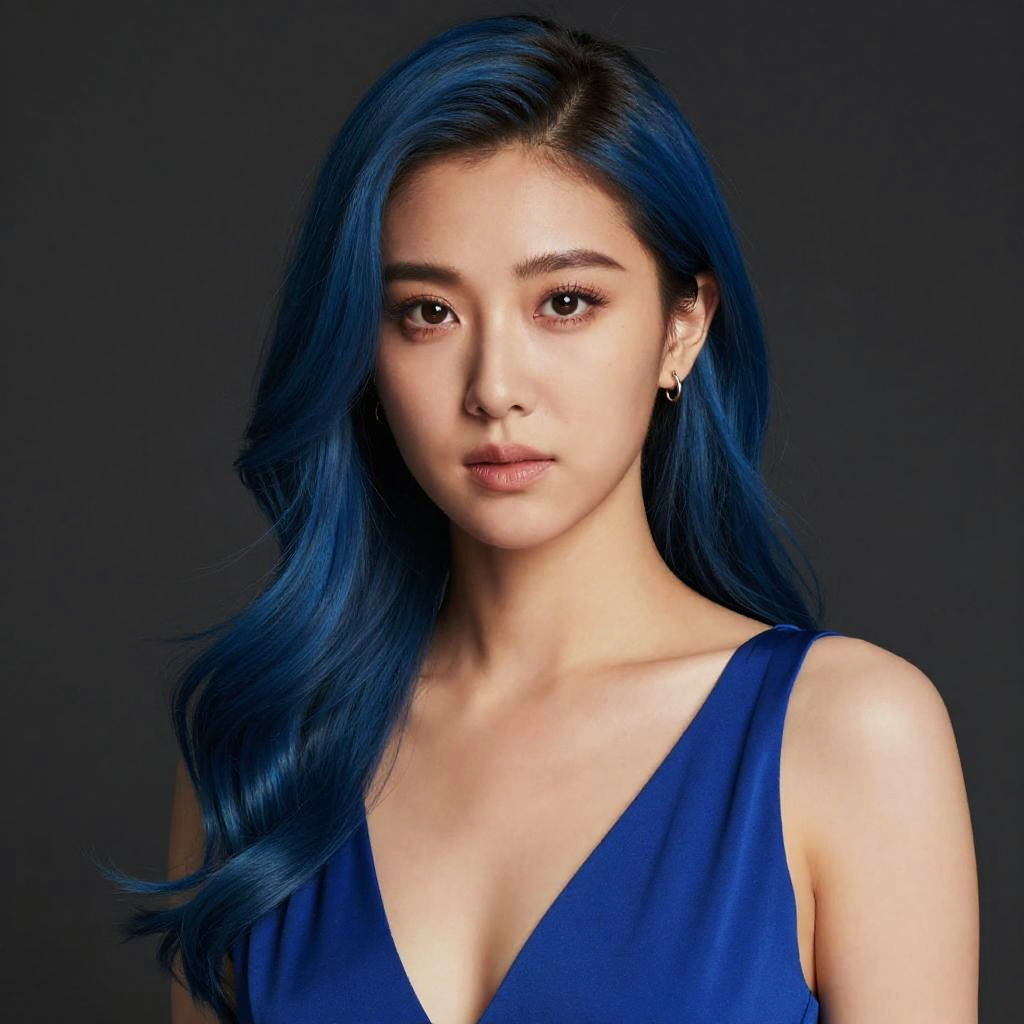 Kida Atlantis, a close up of a woman with blue hair and a blue dress