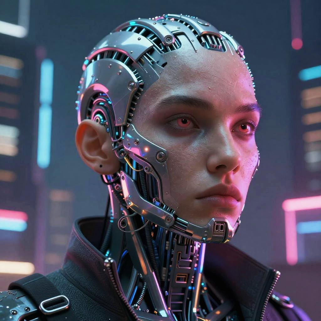 Futuristic Cyberpunk Biomechanical Face