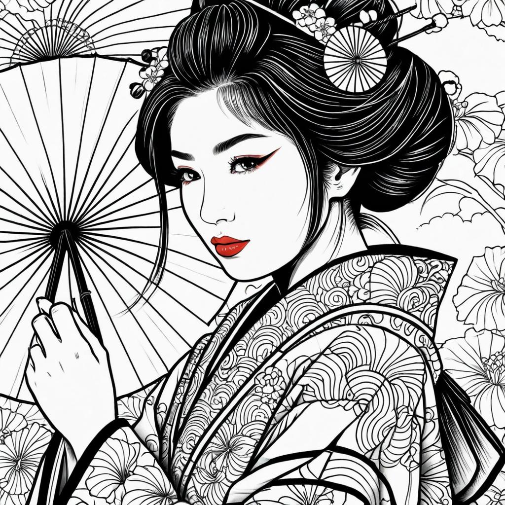 Japanese lotus flower, high-detail adult coloring page, crisp black outlines on white, storybook illustration, designed for coloring, fills entire screen with intricate patterns