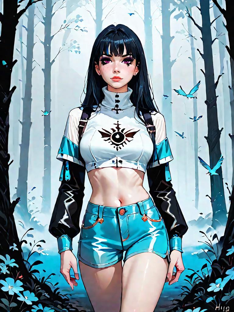 Dark Fantasy Woman in Misty Forest