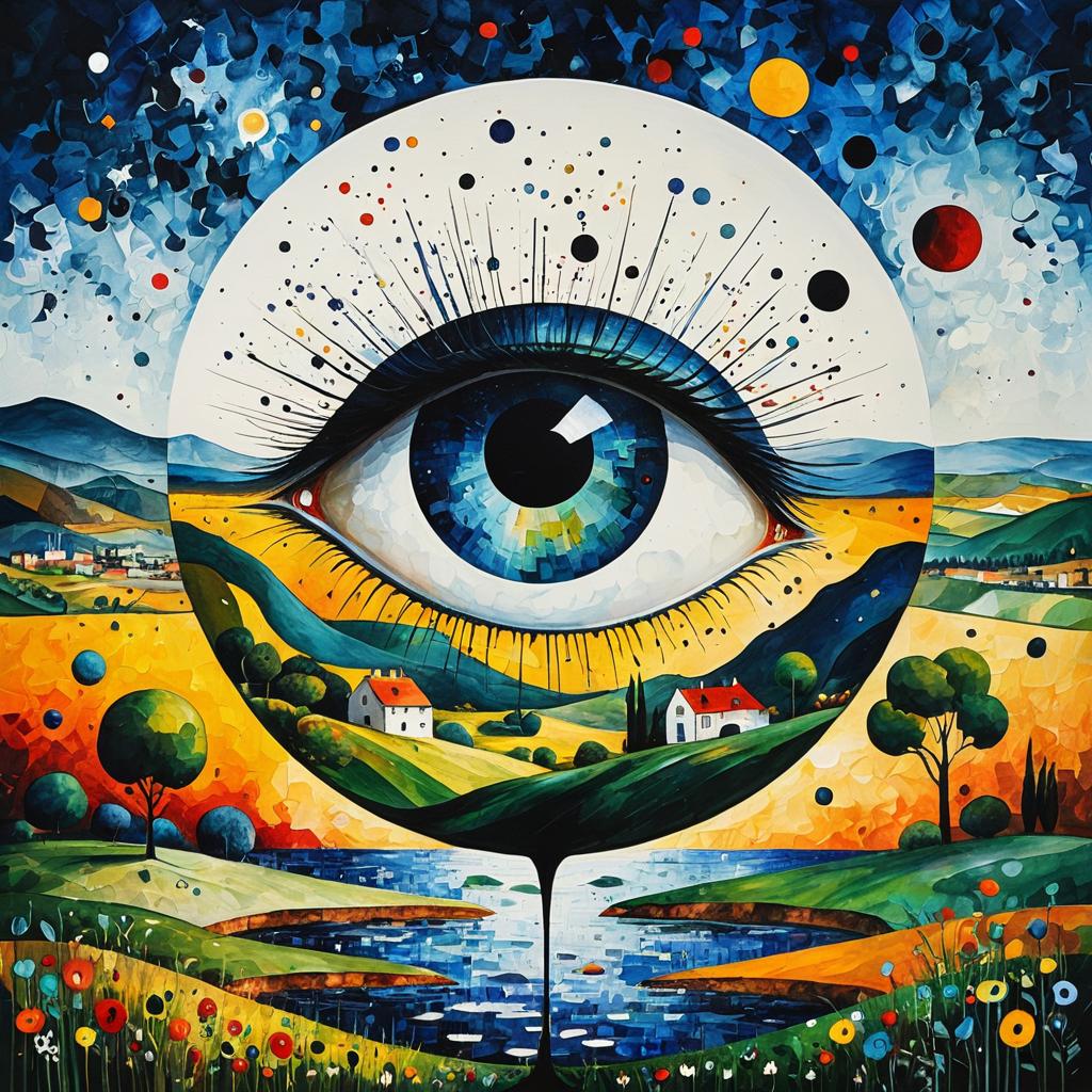 A surreal landscape of an endless desert of reflective mirrors inspired by James Turrell, Yayoi Kusama. Combines digital art, neon ink with abstract patterns and emotional undertones in a surreal art composition.