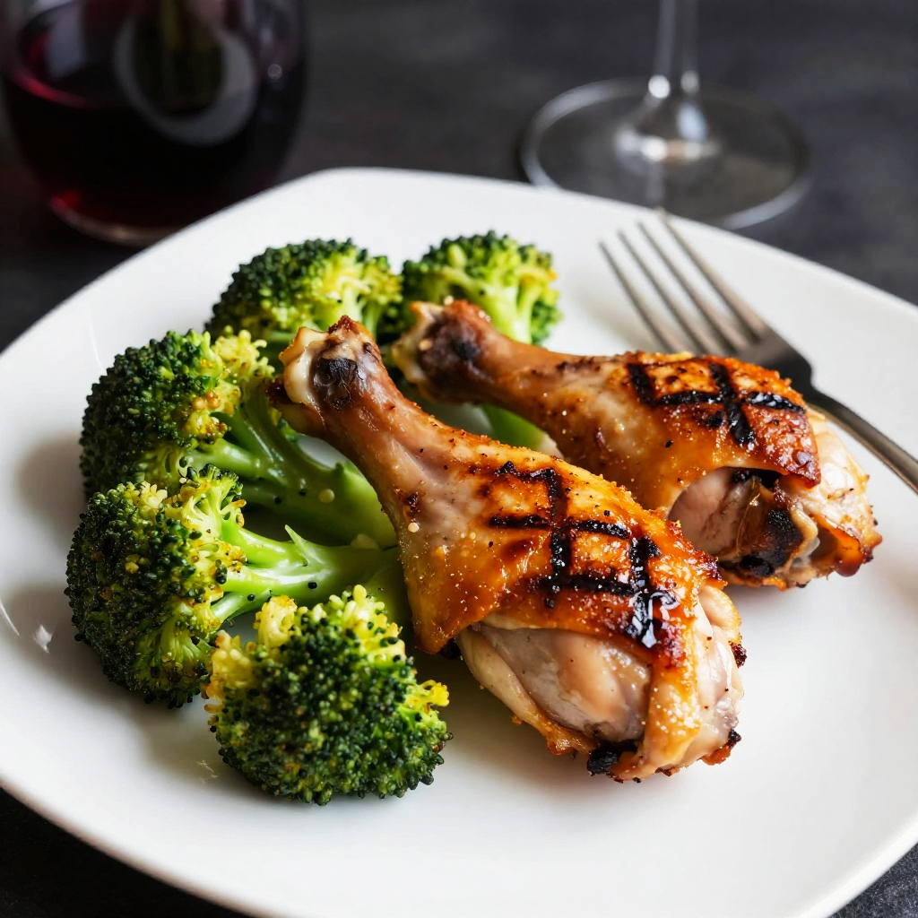Grilled Chicken Drumsticks with Broccoli