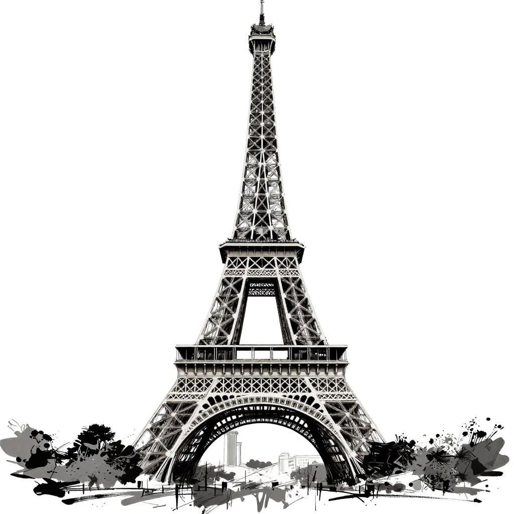 Abstract Black-and-White Eiffel Tower Sketch
