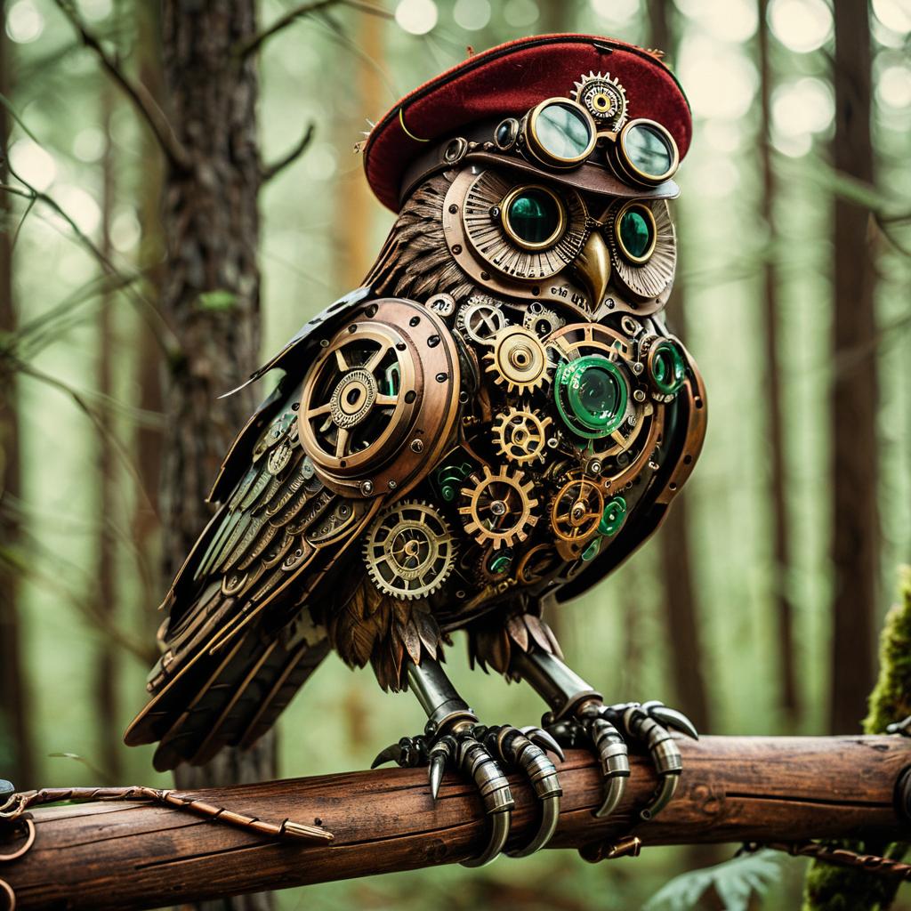 Intricate Steampunk Owl in a Forest