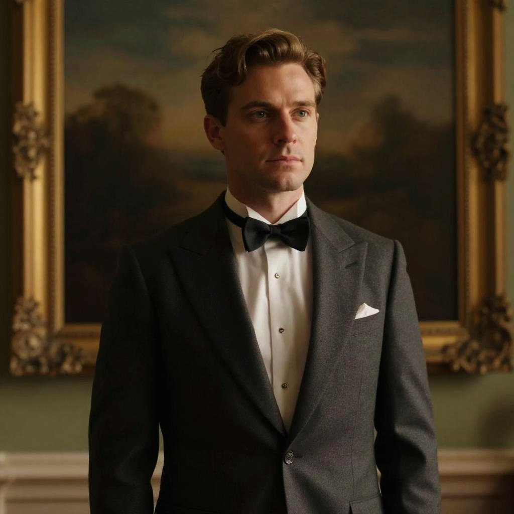 Beige Trousers Man, man in a tan suit standing in front of a building --sref 1438
