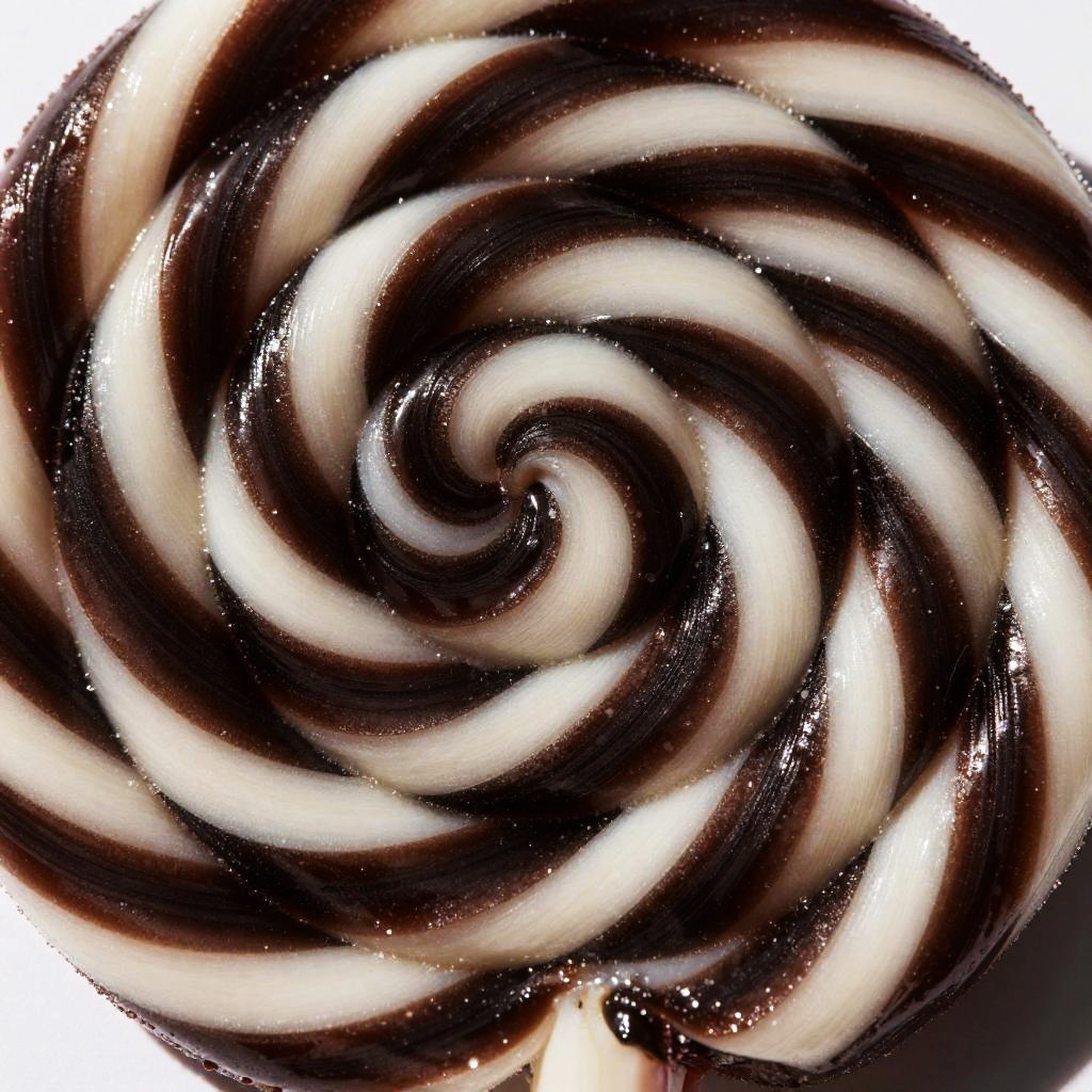 Macro shot of licorice whip candy spiraled elegantly, glistening with sugar granules, dramatic shadows enhancing the texture, vibrant contrast between dark licorice and bright highlights, hyper-realistic detail