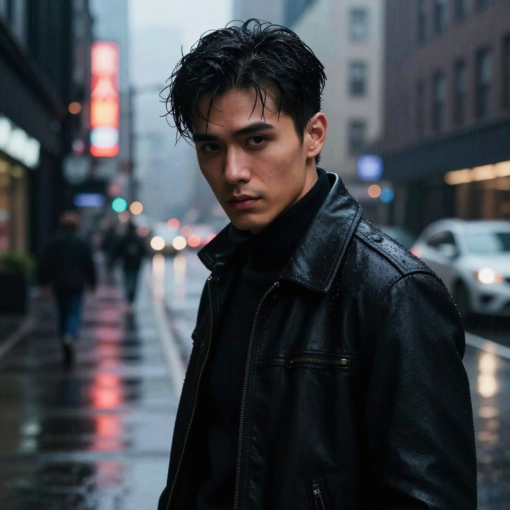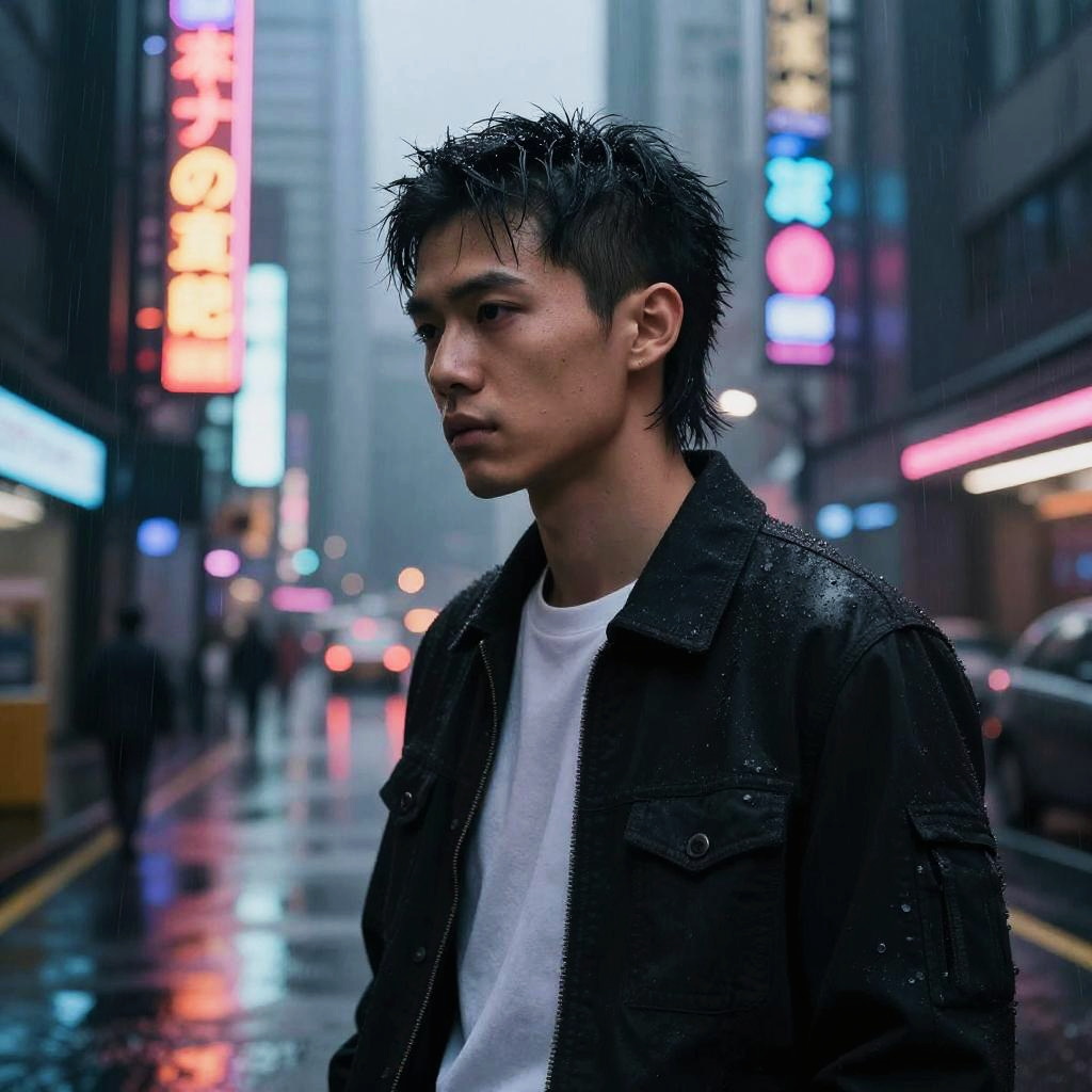 Psychotic smile character in a cyberpunk city, neon lights reflecting on a mad grin, futuristic dystopian style, intense facial expression, ultra-realistic