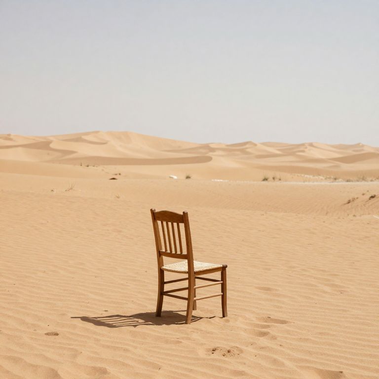 Amidst the endless expanse of the desert, a solitary chair stands as a silent sentinel, embodying the paradox of stillness and infinite possibility, where the weight of solitude meets the boundless freedom of the imagination.