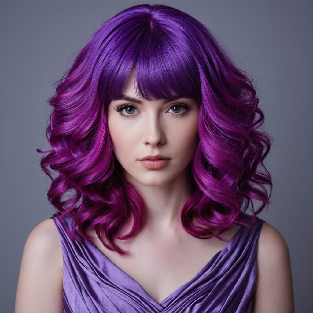 Realistic Portrait of Girl with Purple Wig