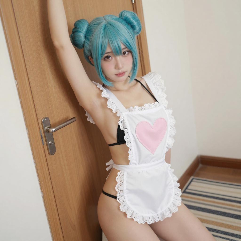 Playful Woman with Turquoise Hair in Maid Outfit