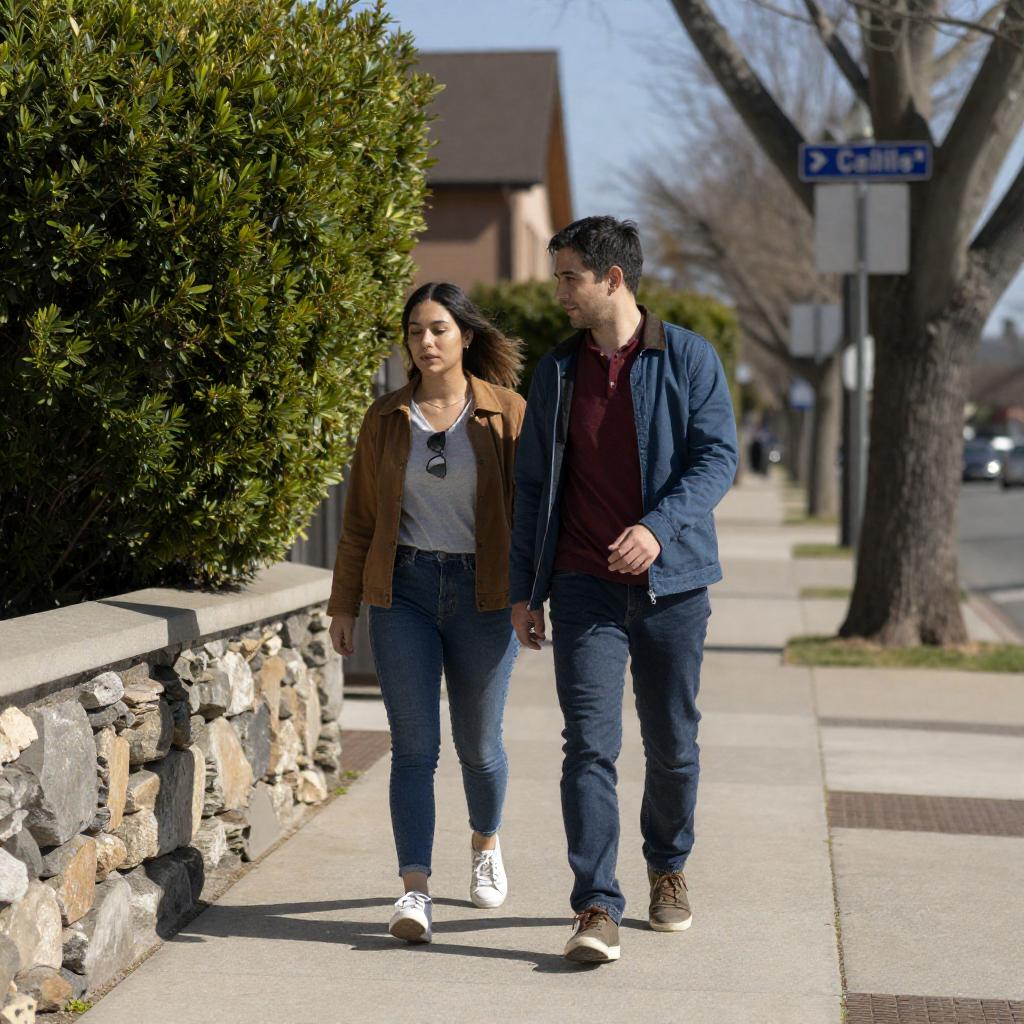 Woman Walking on Suburban Street