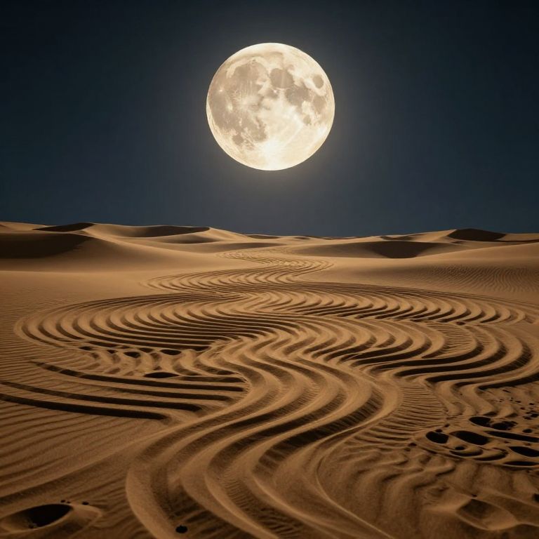 Golden dreams cascade from the luminous moon, weaving intricate labyrinths of sand that beckon wanderers into a realm of introspection and infinite possibility.