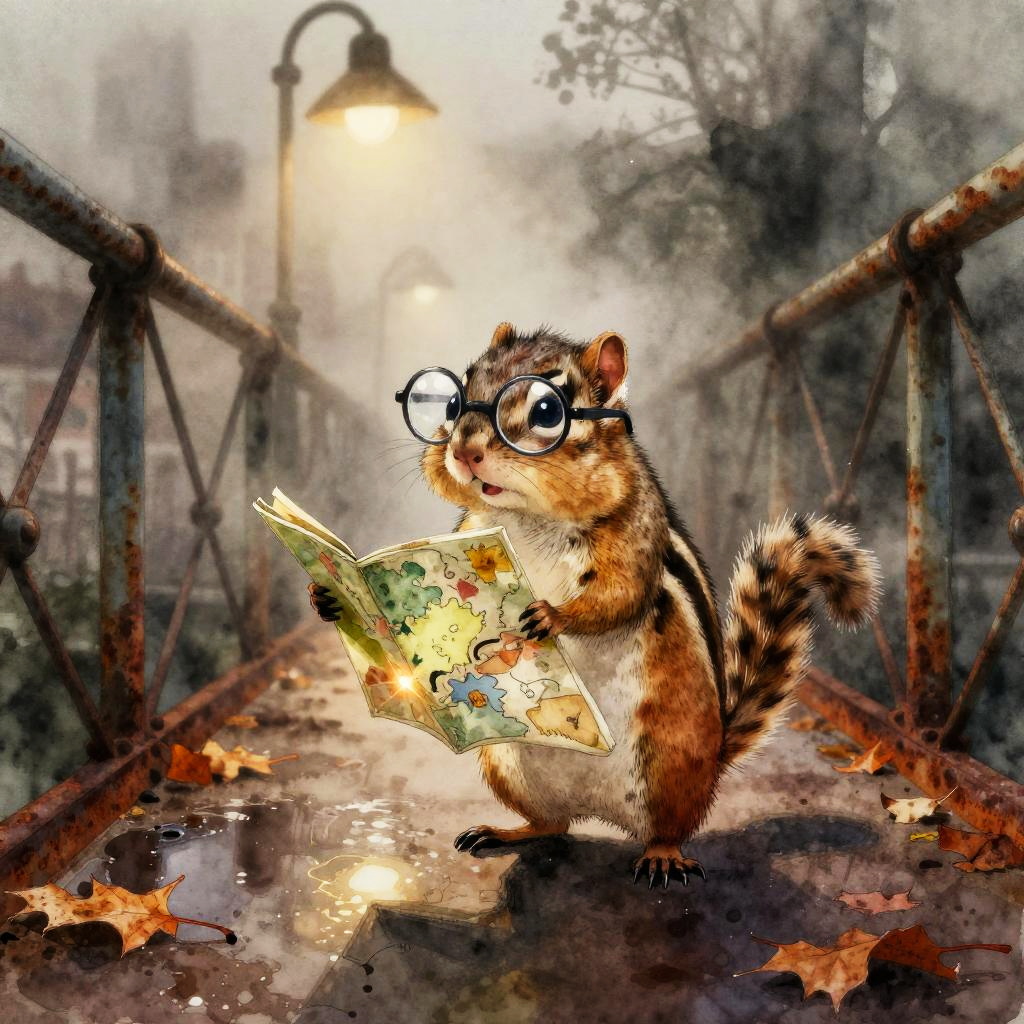 Wise old tortoise sleuth sporting round glasses and a worn notebook navigates storm-blown harbour docks with stacked crates and seagulls overhead, under moody lamps and drifting mist; noir atmosphere with a whimsical twist and cozy intrigue. Rendered in sepia toned scratchboard. Reflective puddles, dramatic rim light, soft film grain, volumetric fog, shallow depth of field, gentle vignetting, tactile textures, subtle glowing clues.