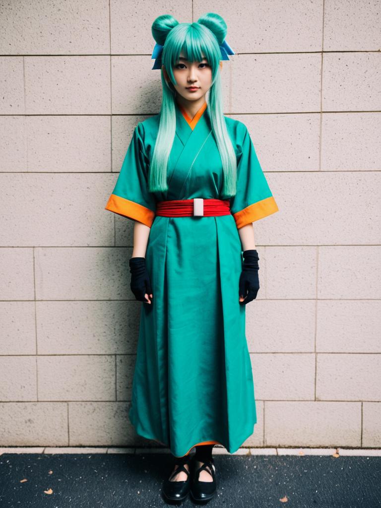 Sexy cosplay woman character wearing Yotsugi Ononoki costume. Realistic photo. Jane Doe dressed as Yotsugi Ononoki