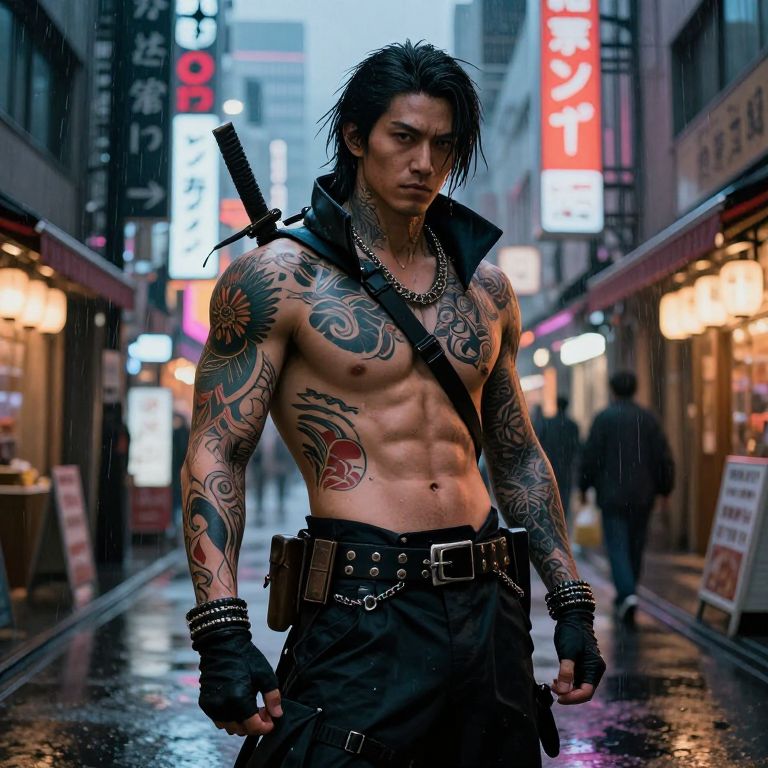 Few cats standing on back two feet stylized as yakuza, standing in the street, realistic looking