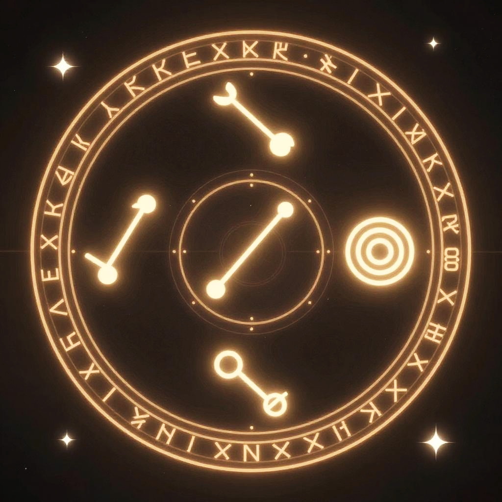 Four symbols of the Chinese constellations arranged in a mystical circular pattern, glowing with ancient runes and celestial light, blending modern digital art with traditional Chinese motifs and symbolism