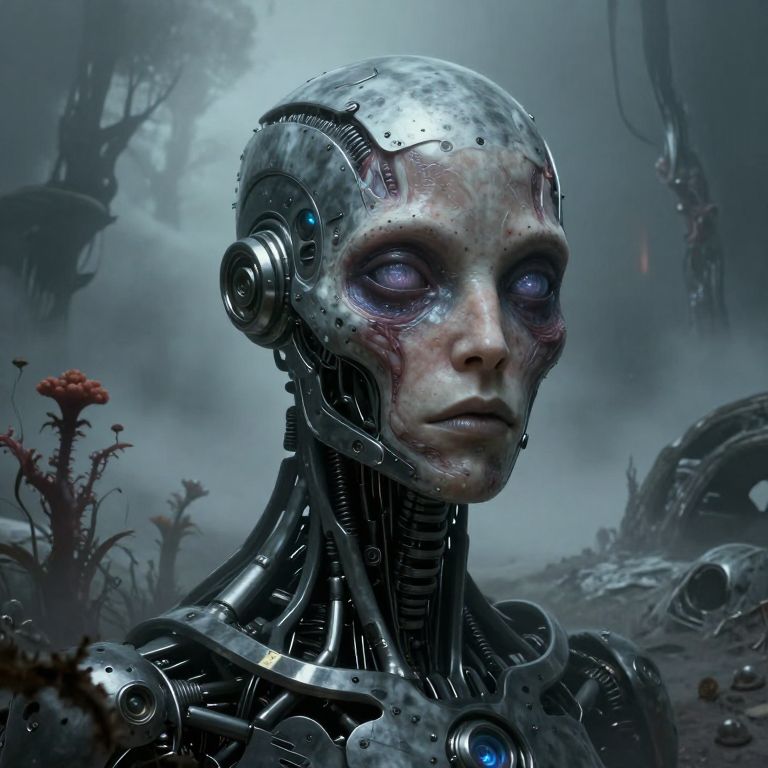 Haunting Android Portrait in Giger Style