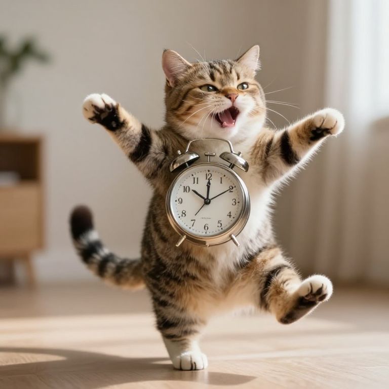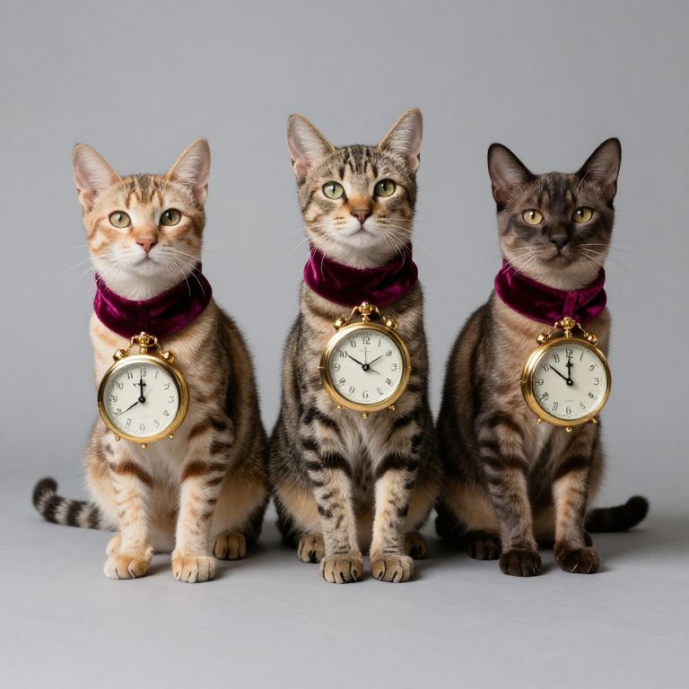 A clock strapped to a cat’s collar ticks backward only in the presence of joy, its hands rewinding time for fleeting moments.