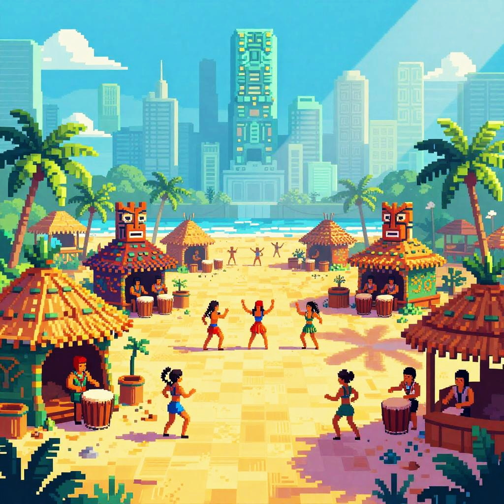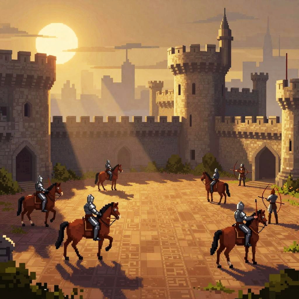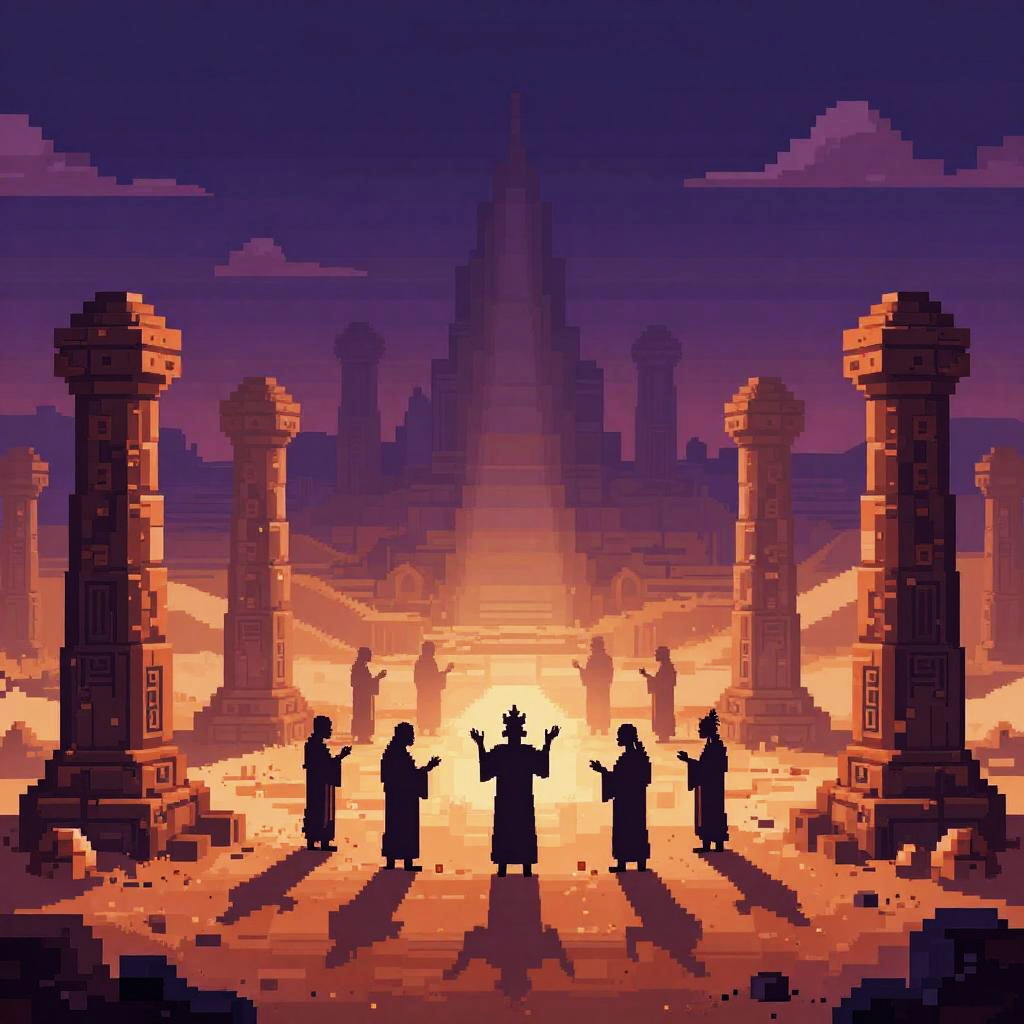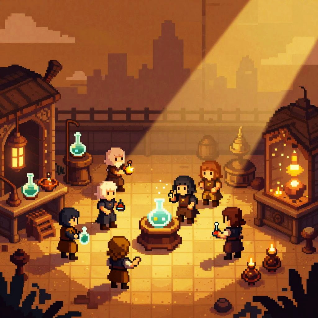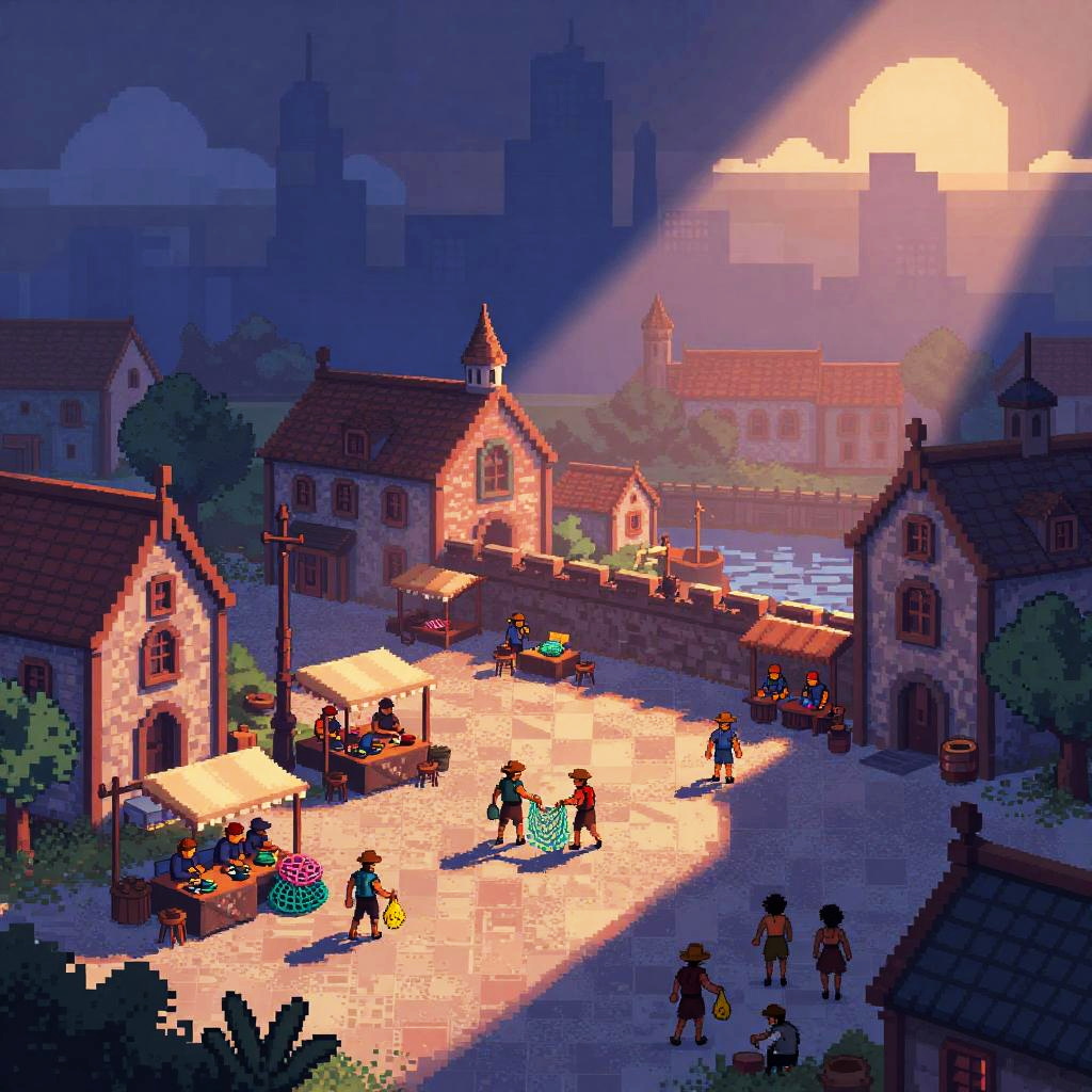 Pixel art realistic style, vibrant carnival night fairground, clowns and acrobats performing with glowing props, at golden hour, bright red and golden yellow palette, 16-bit video game aesthetic, intricate textures, clean outlines, disciplined subpixel shading, tasteful dithering, layered parallax skyline, reflective surfaces, long shadows, volumetric sunbeams, moody clouds, cinematic wide composition, subtle CRT bloom, sharp tile patterns, cohesive color ramps, poster-quality key art