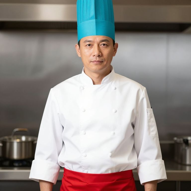 Male Chef in Turquoise Hat and Red Belt
