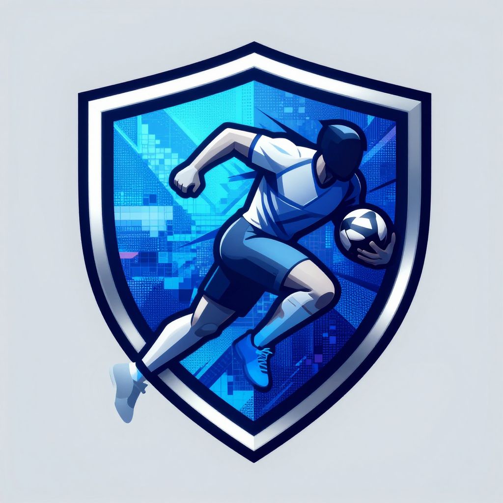 Ai sports team logo generator designing a dynamic shield emblem with integrated AI-inspired patterns, pixel art textures, and stylized sports equipment, vibrant gradients blending from electric blue to silver, evoking power, agility, and futuristic competition spirit