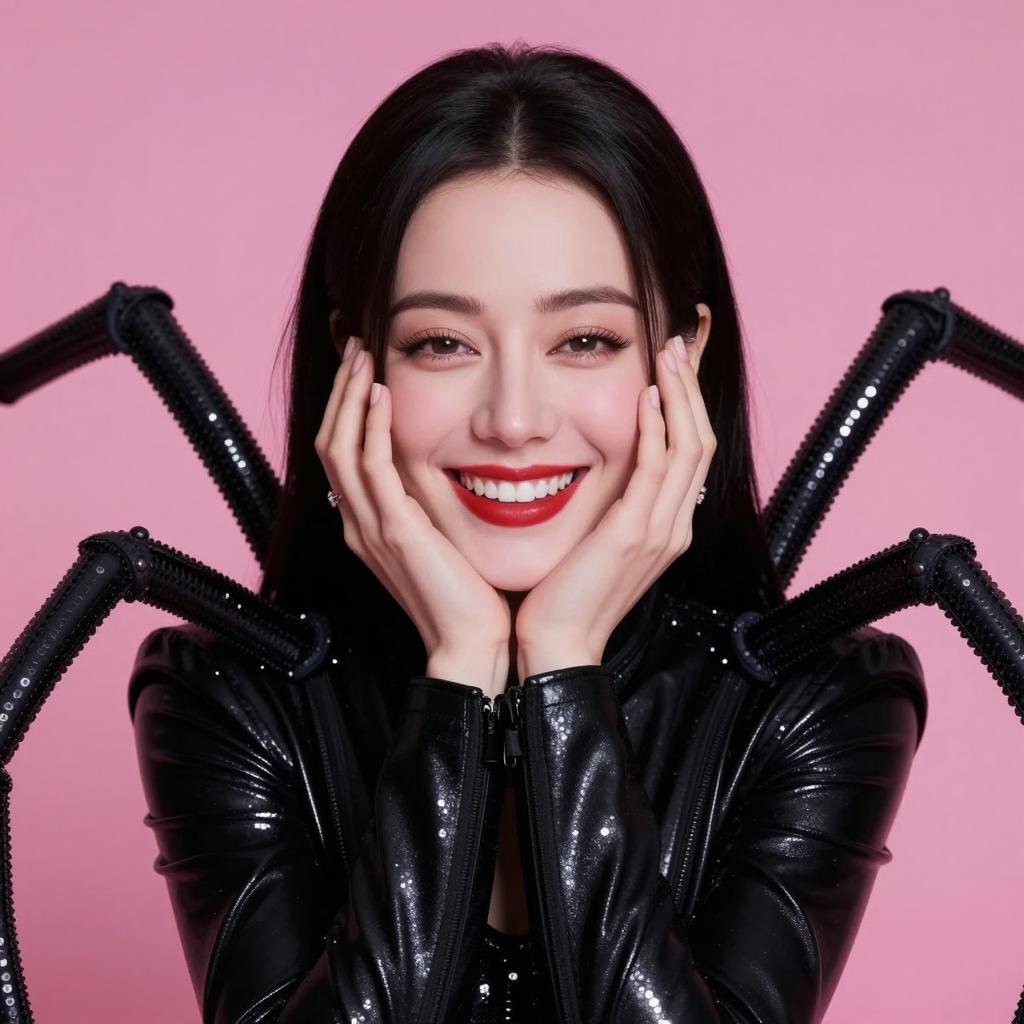 Eerie Encounter: Red Skeleton and Smiling Woman
