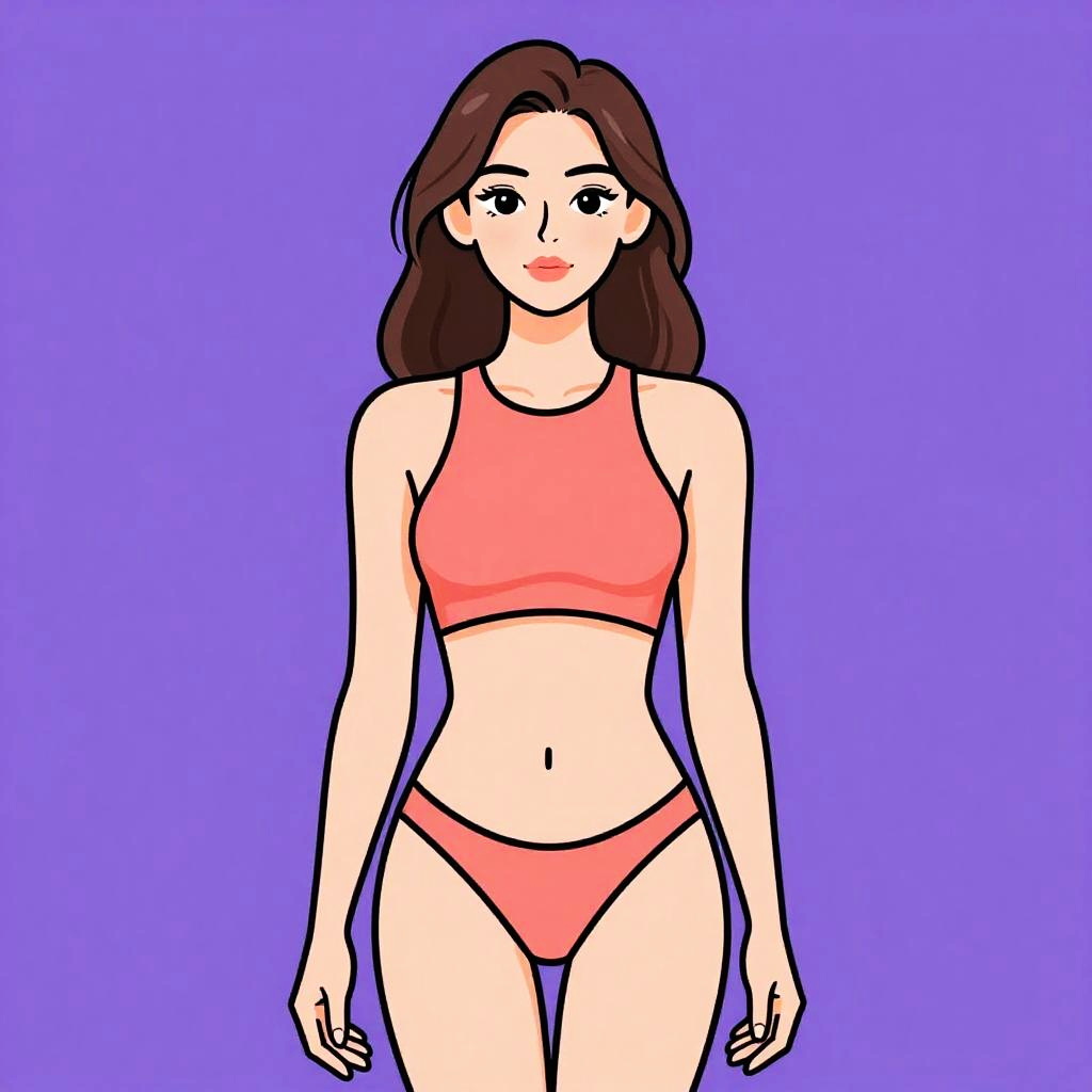 Woman with pretty face and pretty hair. Sporty high-neck bikini, quick-dry material, vibrant coral color, racerback top, contrasting black trim, cheeky cut bottom, breathable mesh panels, stylish yet functional, ideal for active beach days. --sref 1461