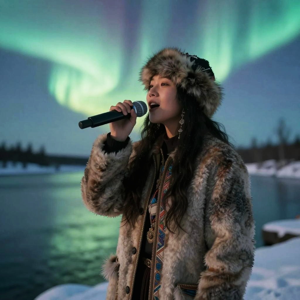 Aurora-Lit Ethereal Inuit Throat Singer Portrait