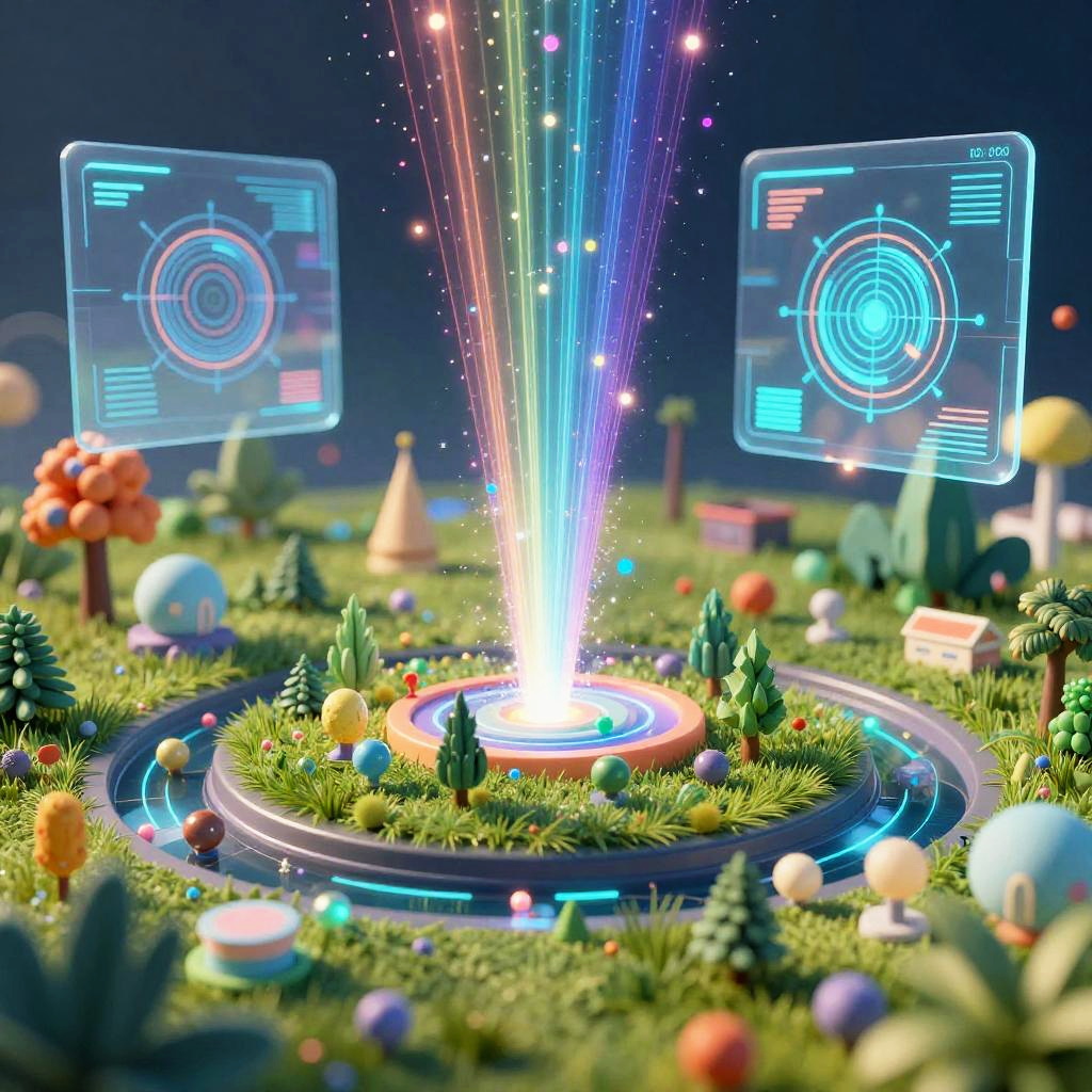 Cartoon word generator machine emitting glowing neon text with swirling letters, surrounded by cartoonish bright light bursts and electric sparks, futuristic playful cartoon style, detailed colorful environment, dynamic and energetic atmosphere, lively and creative concept
