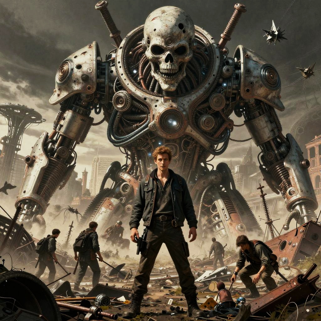 By Mikalojus Ciurlionis and Travis Louie, hyper realistic full view photo of a (post-apocalyptic wasteland with remnants of advanced technology and survivors scavenging for resources:1.1), (striking, mysterious, grotesque, massive, masterful:1.4), bold lines, hyper detailed, award winning, limited color palette, high contrast, depth of field, (intricate details, masterpiece, best quality:1.4)dramatic cinematic lighting, film grain, looking at viewer, dynamic pose, wide angle panoramic view