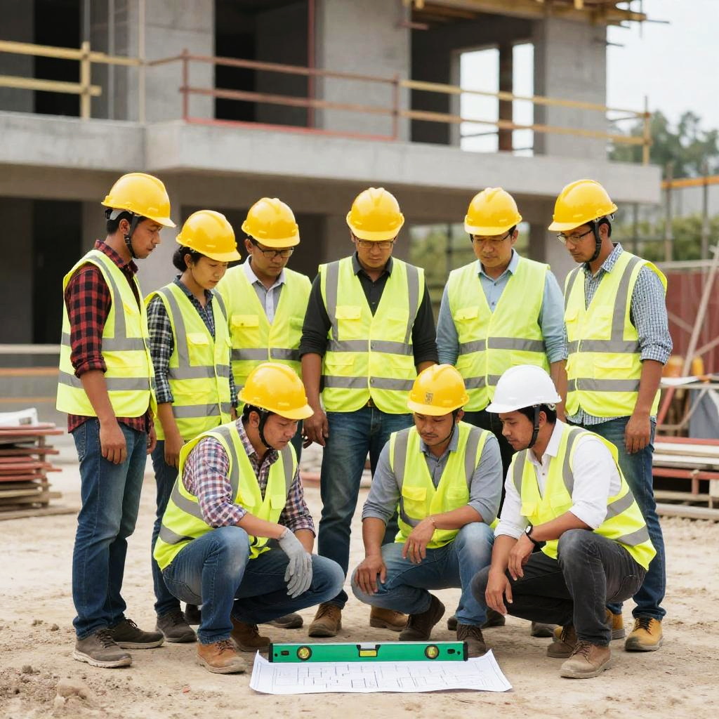 Construction Workers at Sunlit Site