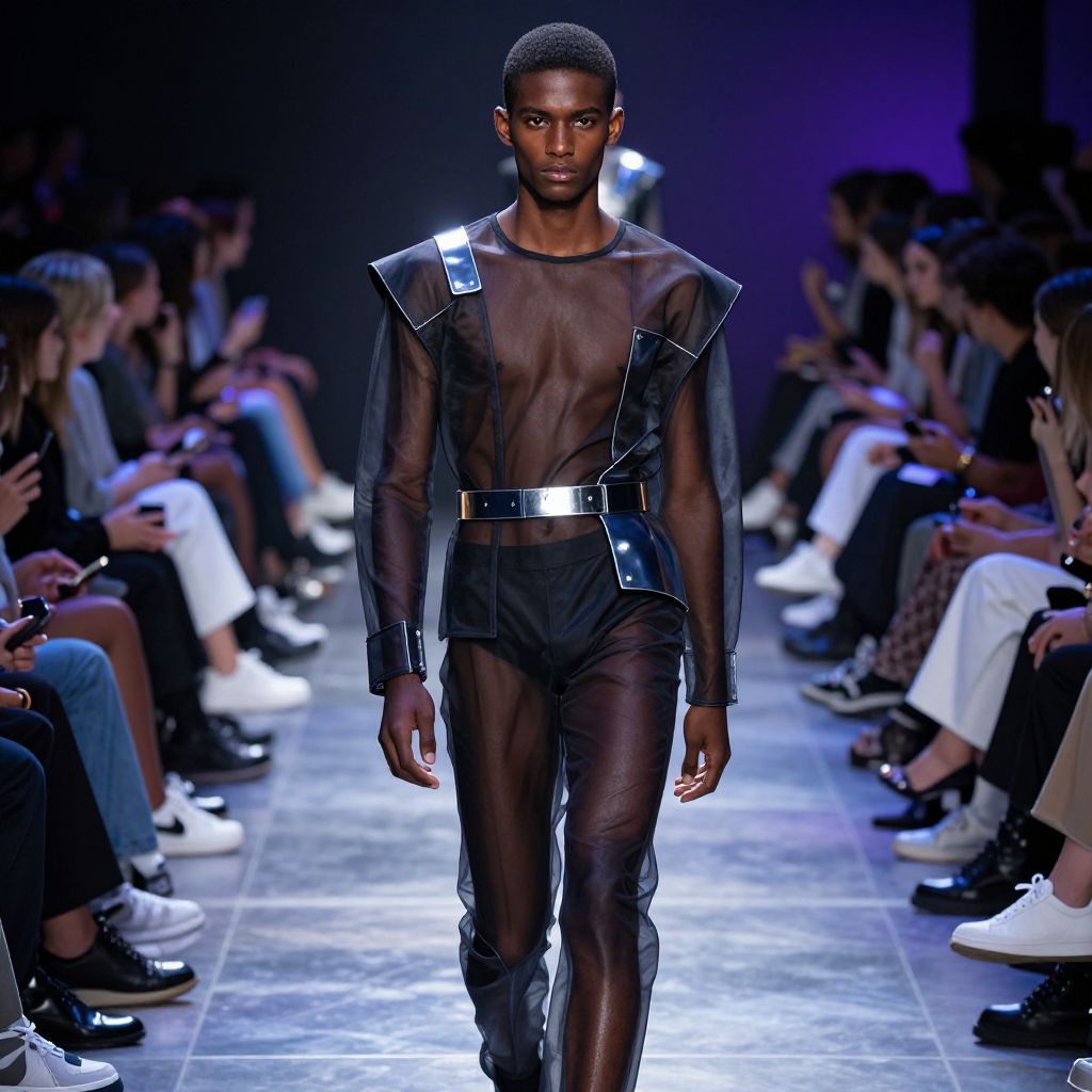 Dark Skin Femboy Model on Futuristic Runway