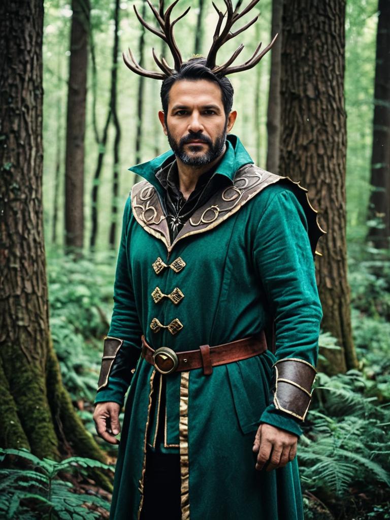 Man in Enchanted Forest Costume, photorealistic detailed studio cosplay portrait