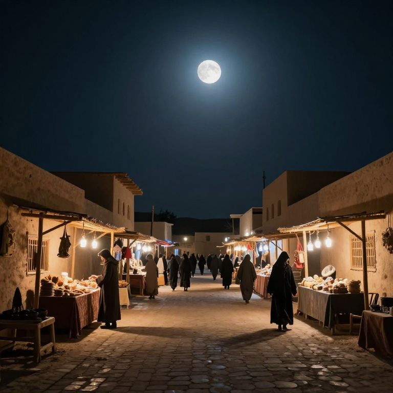 Luminous Moonlit Desert Town Market