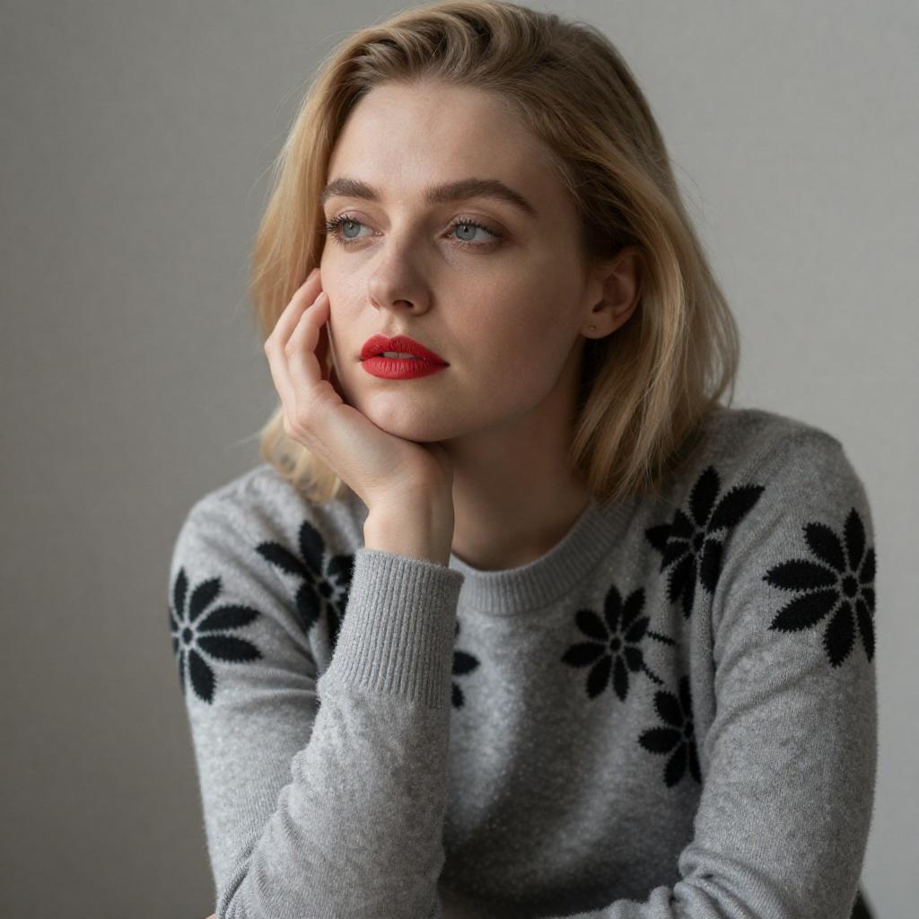 Thoughtful Blonde Woman in Knit Sweater