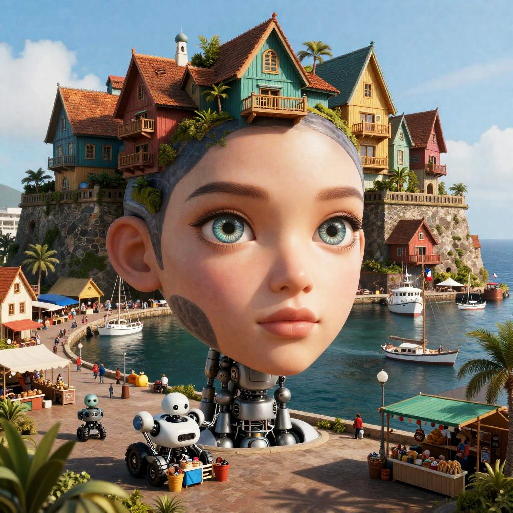 Photorealistic Cyber-Tropical NSFW Harbor Muse