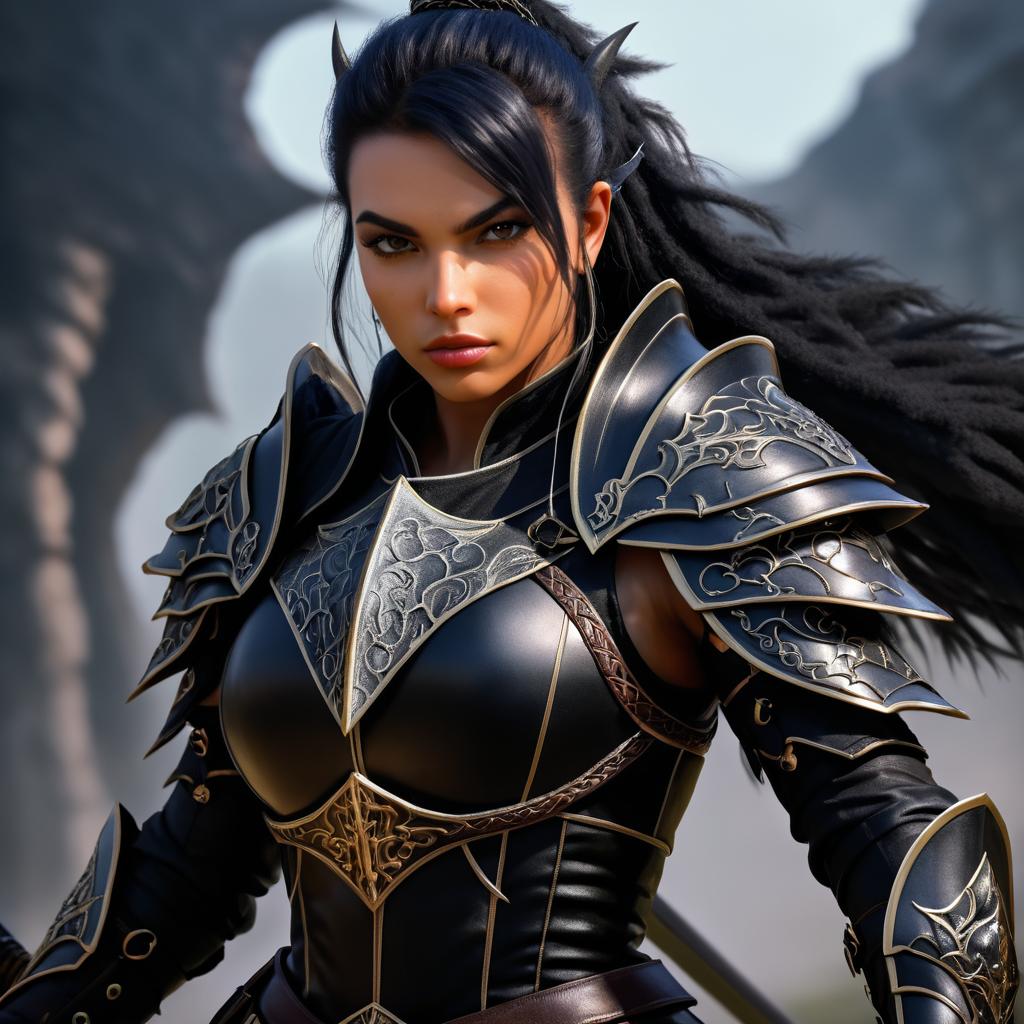 Fierce Female Dragon Slayer in Dark Fantasy Armor
