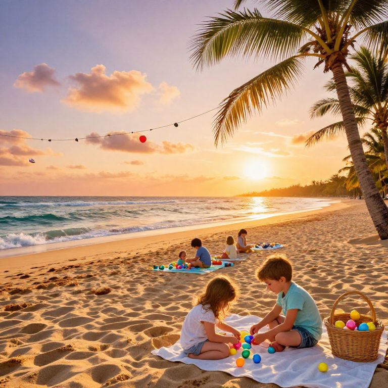 Girls Enjoying Tropical Beach Picnic