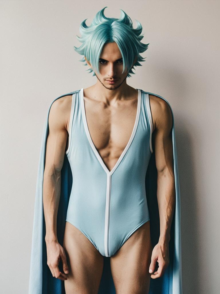 Man cosplay. Wearing Zephyr (One Piece) costume. Realistic photo. Dressed as Zephyr (One Piece) --sref 1400