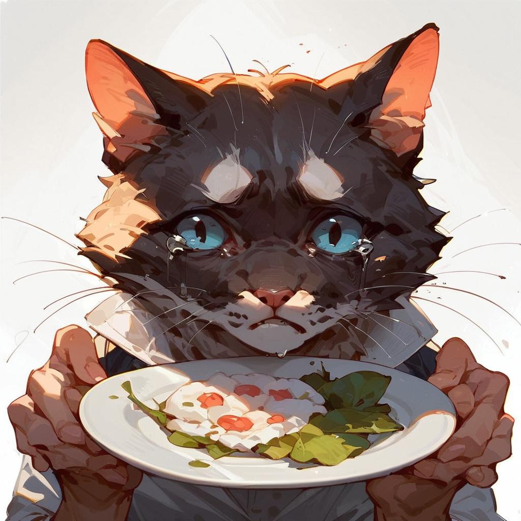Score_9, score_8_up, score_7_up, (sad cat meme:1.1), animal focus, cat, animal, no humans, tears, cry, white background, (front view:1.2), bust, plate, desktop