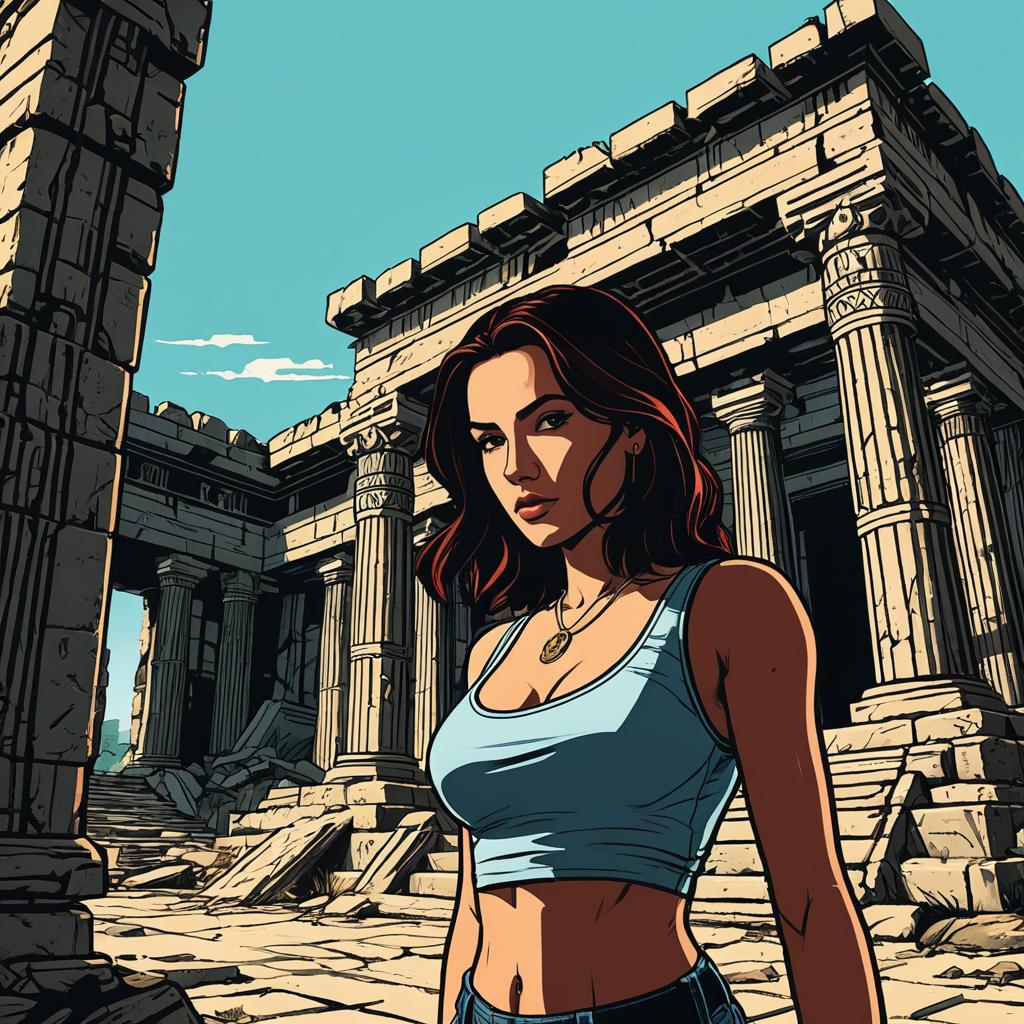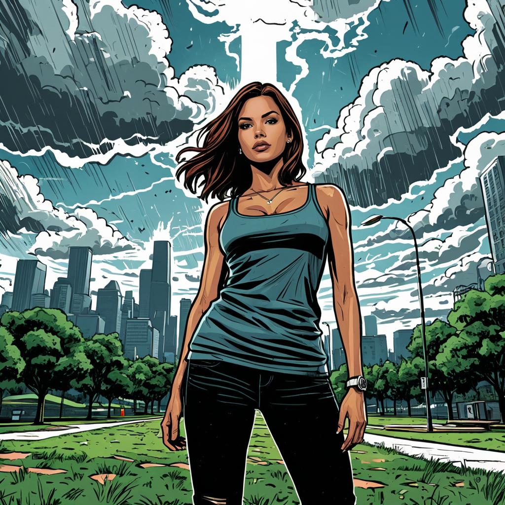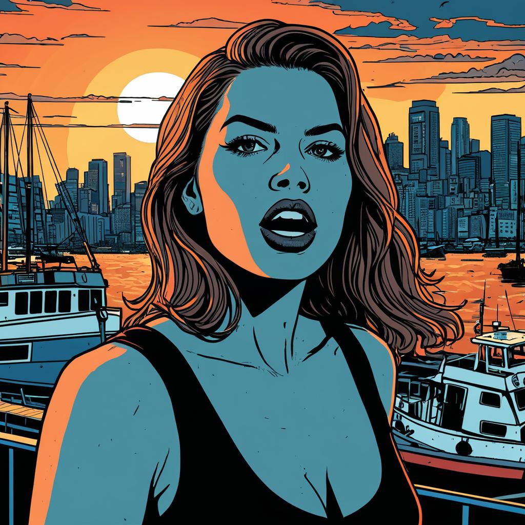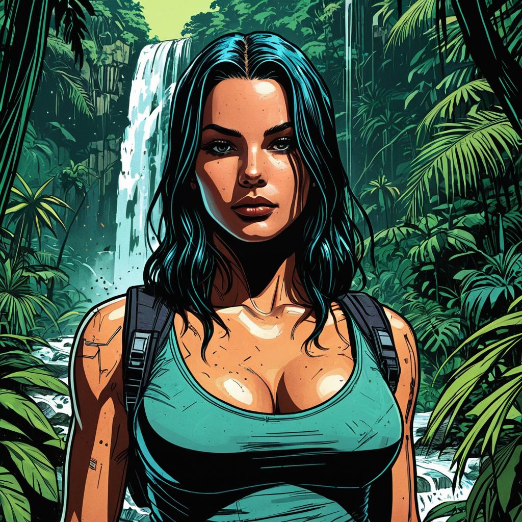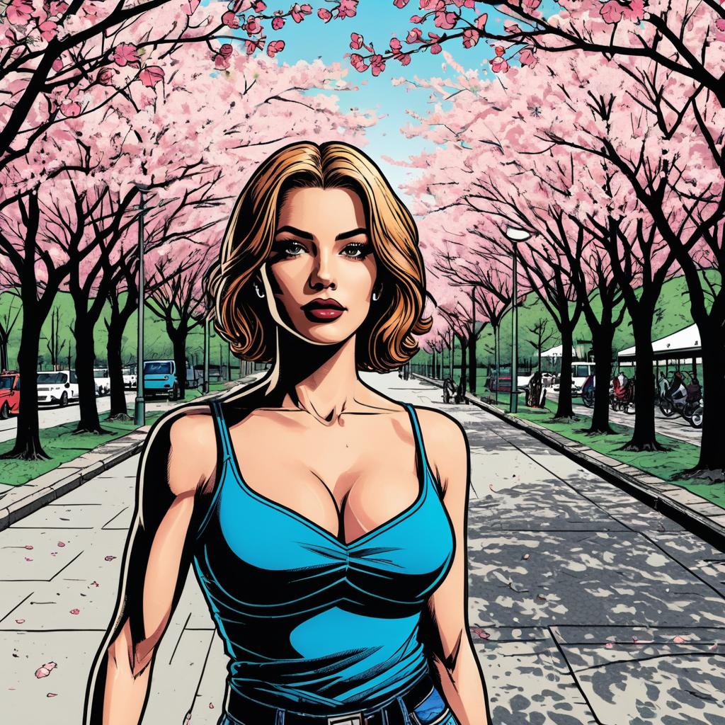 Hot girl, enchanted fairytale village, in the style of a whimsical illustration, loading screens, gta style artwork, highly detailed, celshading, digital painting style, dramatic composition, 21st century comic book cover, studio lighting, bold contour lines drawing