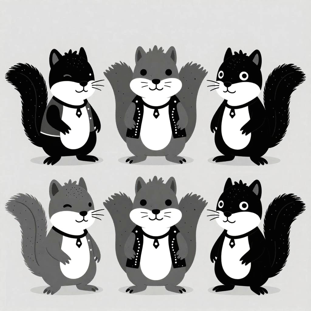 3 grunge punk seals in a band. seals are clad in leather with typical early 80s punk style hand drawn texture, simple black, white and gray and minimalist shapes flat colors.