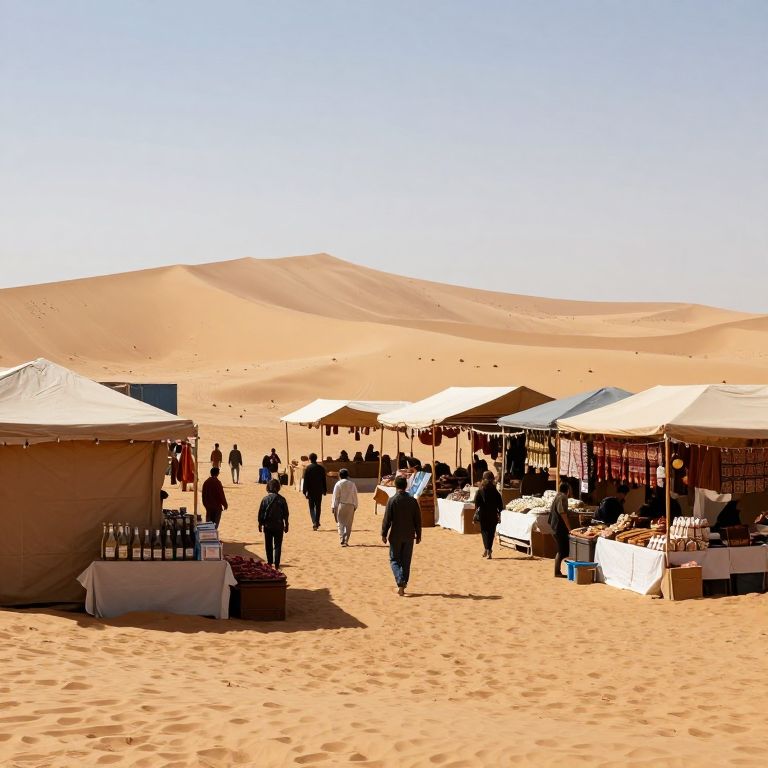 A desert mirage takes physical form, becoming a marketplace of impossibilities where vendors sell impossibility as a bottled emotion.