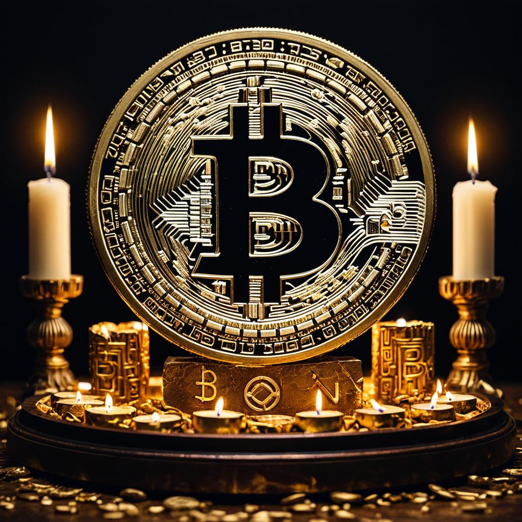 Gold Bitcoin Logo on Candlelit Altar