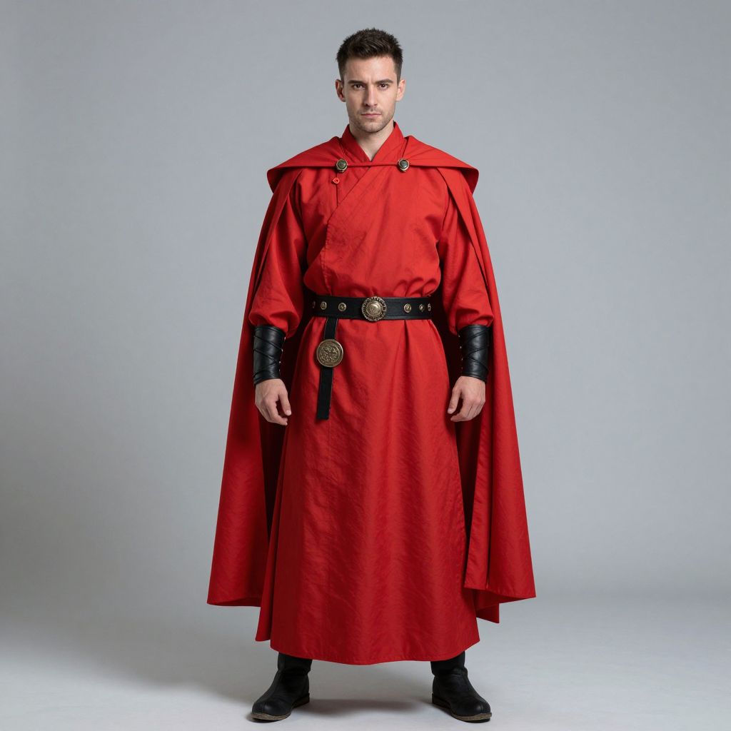 Man Fantasy Costume, man in a red robe and a red cape