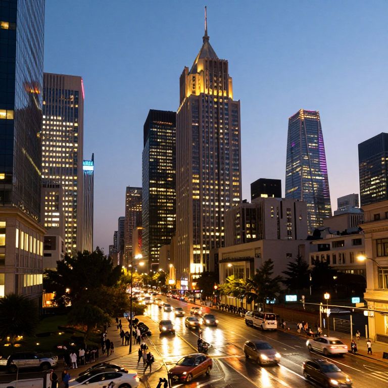 Vibrant Urban Cityscape at Dusk
