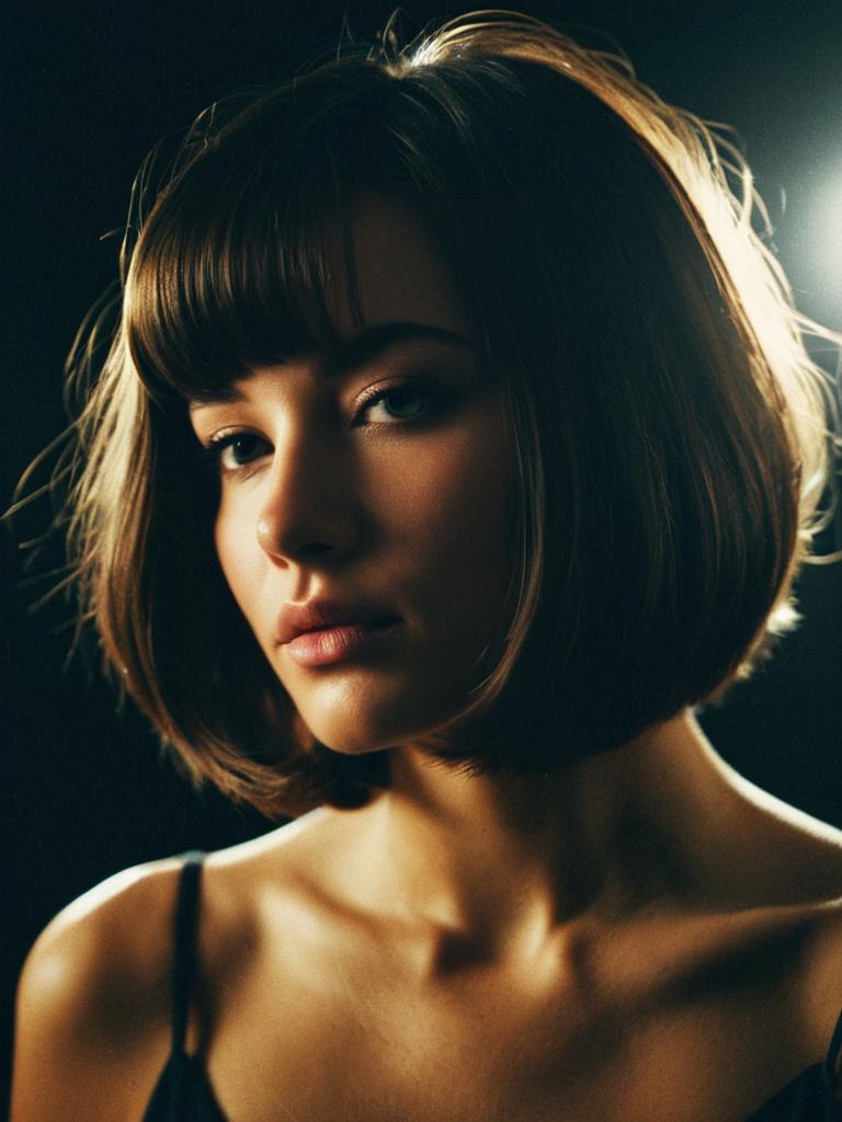 Woman with Long Bob Hairstyle, photorealistic glamour portrait, cinematic light