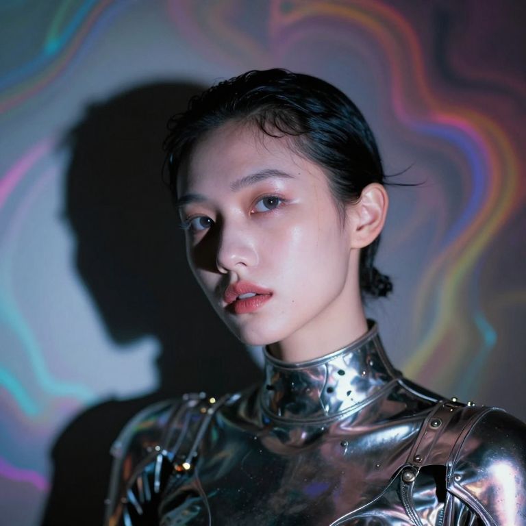 Surreal Metallic Portrait with Dreamlike Blur
